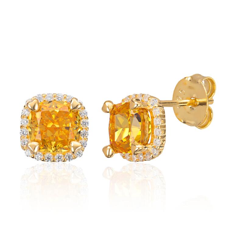 Ørepynt med Gul zirkon i forgylt sølv